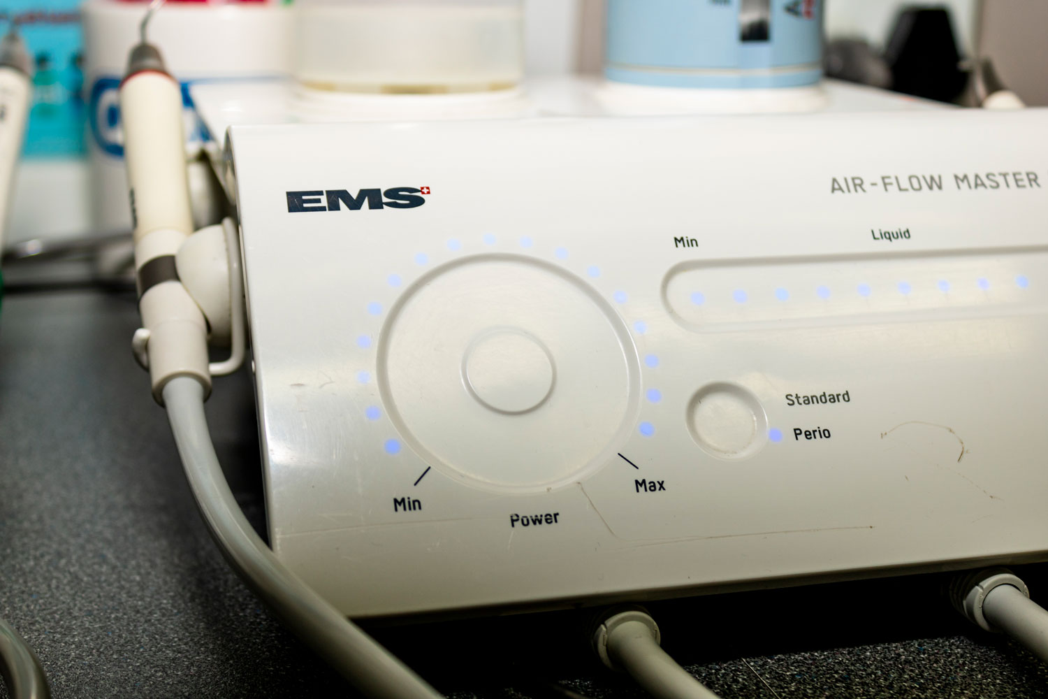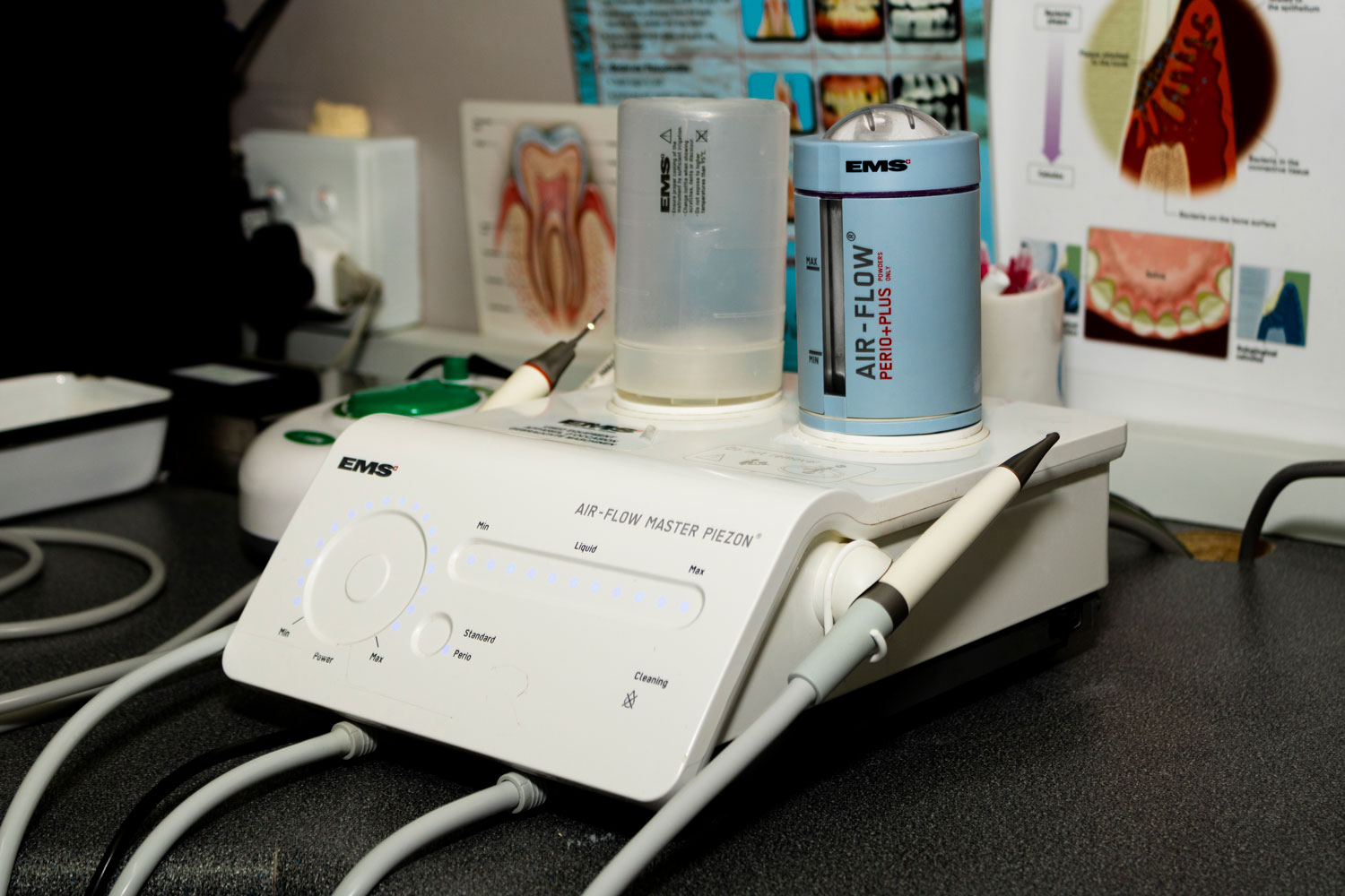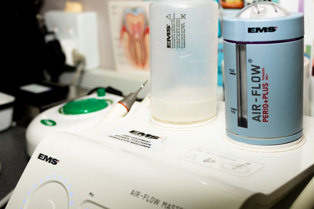 The cleaning process is quicker, more thorough, and gentler than tooth polishing with paste and rubber cups. Our machine removes stains on teeth and is very effective in cleaning fixed orthodontic appliances, implants, and bridges.